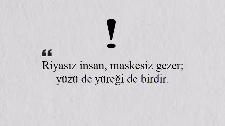 - “Riyasız insan, maskesiz gezer; yüzü de yüreği de birdir.”